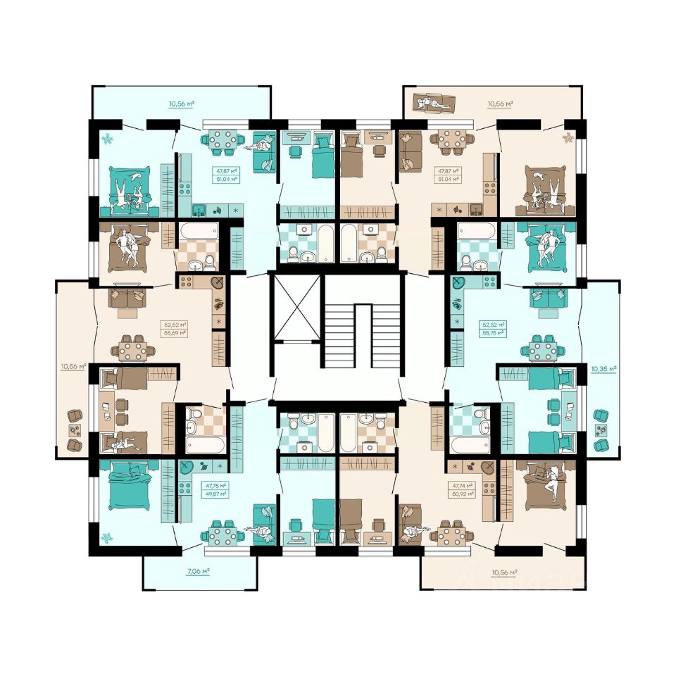 Квартиры формата Smart Comfort + (смарт комфорт +) площадью от 32 кв. м до 136 кв. м предоставляют свободу в реализации планировочных решений, а высота потолков 2,7 м с увеличенными панорамными окнами 2,45 м обеспечивают высокий уровень естественного освещения и открывают завораживающий обзор на лесной массив загородной местности.