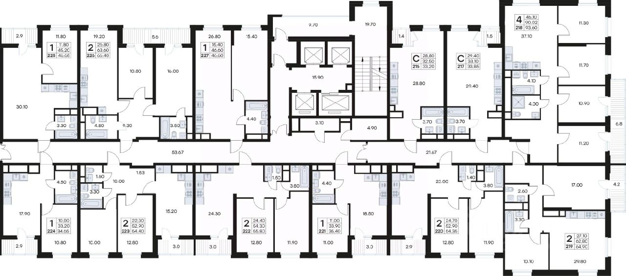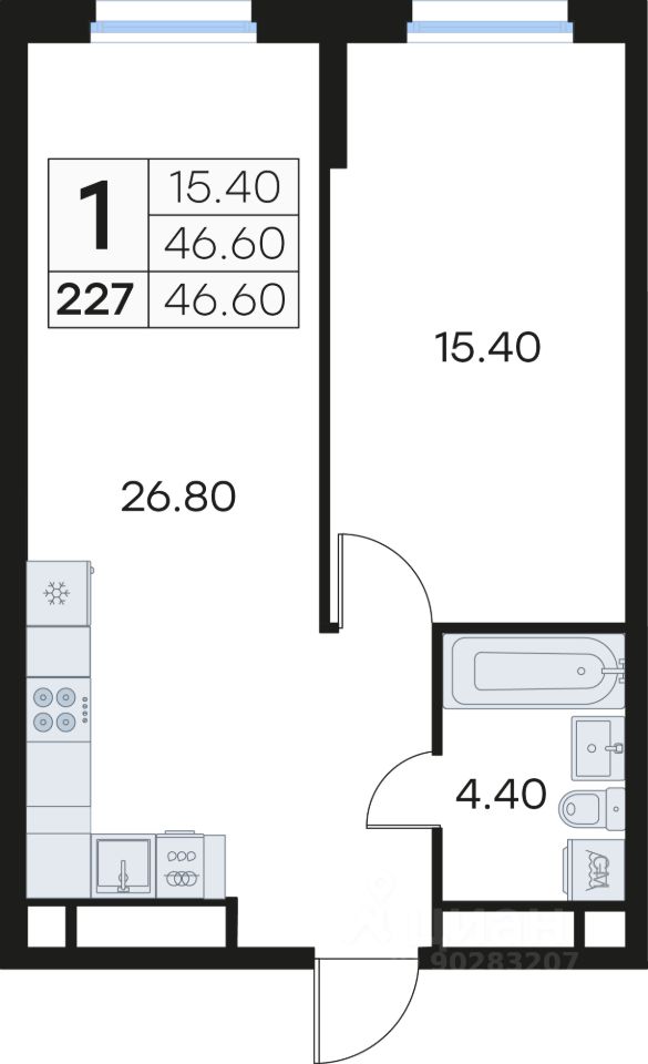 Продается 1-комн. квартира  на 19-м этаже в жилом комплексе Видный — современном проекте комфорт-класса в развитом районе Владивостока. Общая площадь лота составляет 46,61 кв. м, из которых 15,58 кв. м отведено под жилую и 21,32 кв. м под кухонную зону. Номер квартиры - 227.