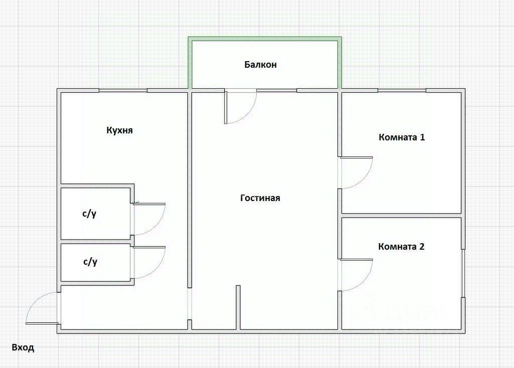 Площадь квартиры составляет 48 кв.м. Планировка квартиры: просторная гостиная, две отдельные комнаты, балкон, раздельный санузел, прихожая.