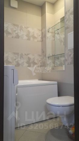 В совмещённом санузле натяжной потолок с двумя, раздельно включающимися софитами, стены и пол кафель, водонагреватель, электрический полотенцесушитель, электрическая вытяжка, стиральная машина автомат.