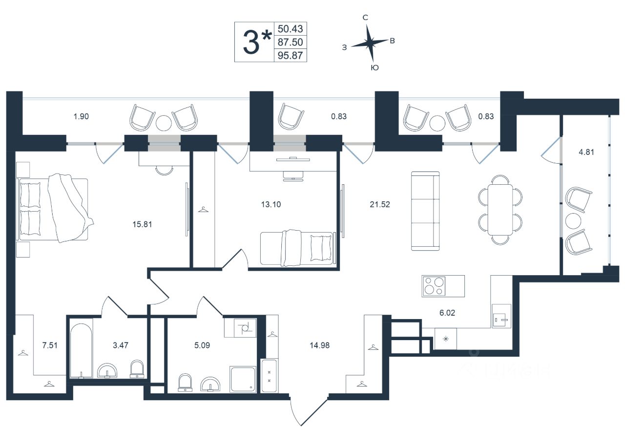 95,87 м²