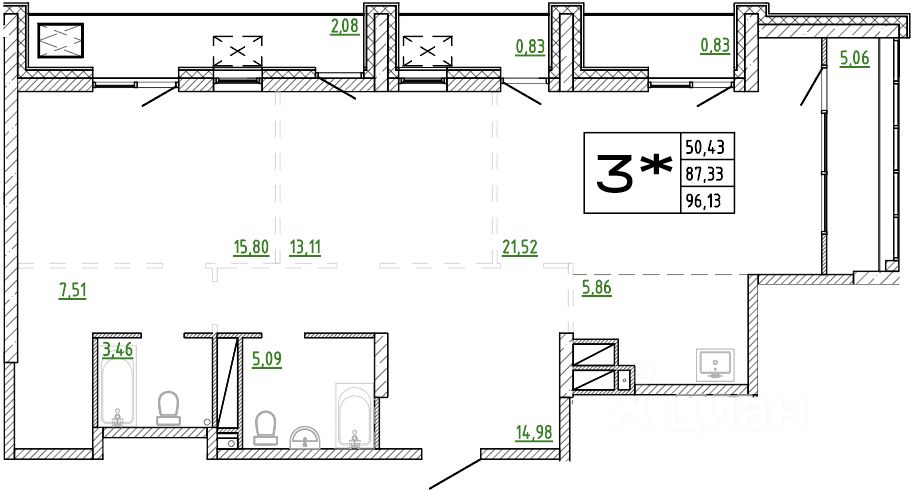 Продаётся 3-комнатная квартира в строящемся доме (Дом 1), срок сдачи: III-кв. 2027, общей площадью 96.13 кв.м., на 6 этаже. Новый жилой комплекс "Архитектор" от группы компаний "Девелопмент-Юг" расположен по адресу: г. Владивосток, по ул. Бежецкая.