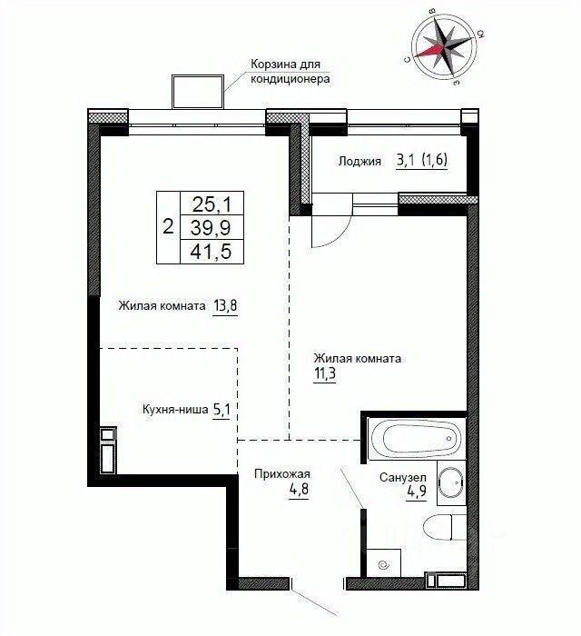 Продаётся 2-комнатная квартира в строящемся доме (Дом 2), срок сдачи: III-кв. 2026, общей площадью 41.3 кв.м., на 3 этаже. ЖК "Новый" - это:
