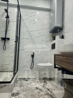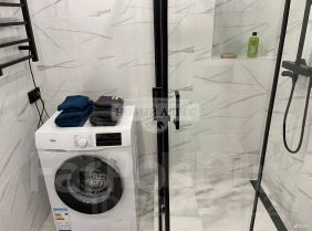 *Светлый функциональный санузел: душевая кабинка, подвесной унитаз, титан, стиральная машина.