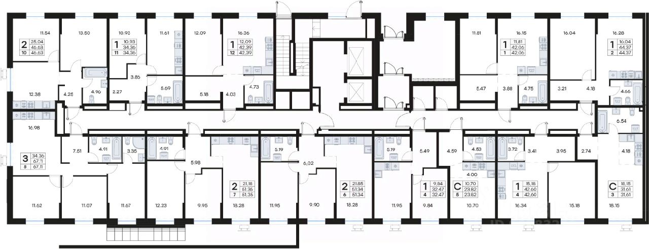 • Планировочные решения под любой жизненный сценарий от 23 до 67 м²