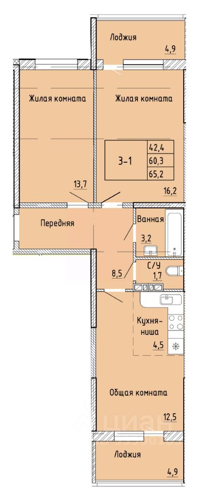 Продаётся 3-комнатная квартира в строящемся доме (Дом 1), срок сдачи: IV-кв. 2025, общей площадью 65.2 кв.м., на 4 этаже. Клубный поселок "Сочи-парк" - это оазис уединения и гармонии, граничащий с городской средой за пределами поселка.