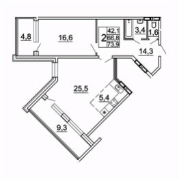 73,9 м²