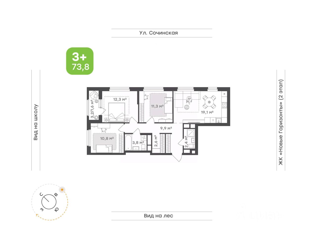 Просторная, светлая квартира, где каждый член семьи найдёт себе место