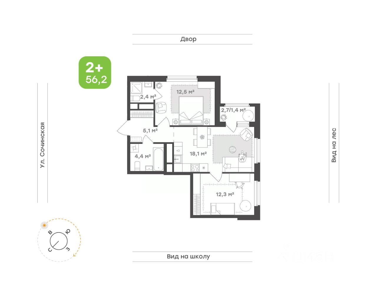 Дополнительный санузел с местом под стиральную машину и просторная прихожая с интегрированной системой хранения завершают идеальную планировку квартиры, делая её уютным домом для современной семьи