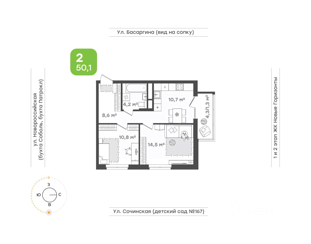 Балкон 4,3 кв.м. с видом во двор, чтобы не беспокоиться о безопасности ребёнка, а наслаждаться архитектурой