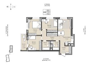 Раздельные санузел 3,7 кв.м. и ванная 4 кв.м. для удобства большой семьи