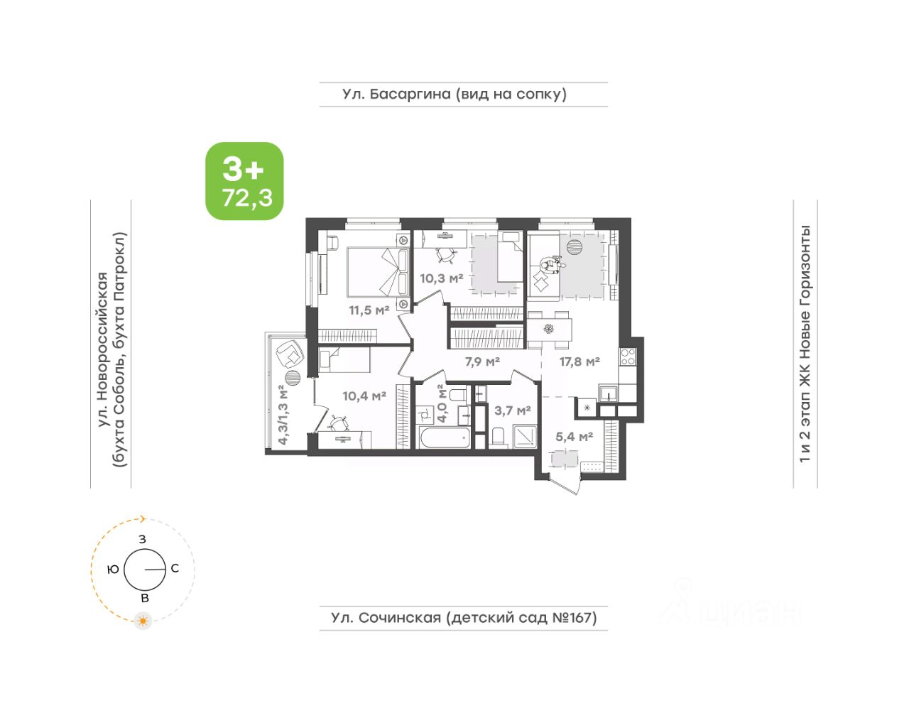Вторая детская 10,4 кв.м. с выходом на балкон и видом на морские пейзажи