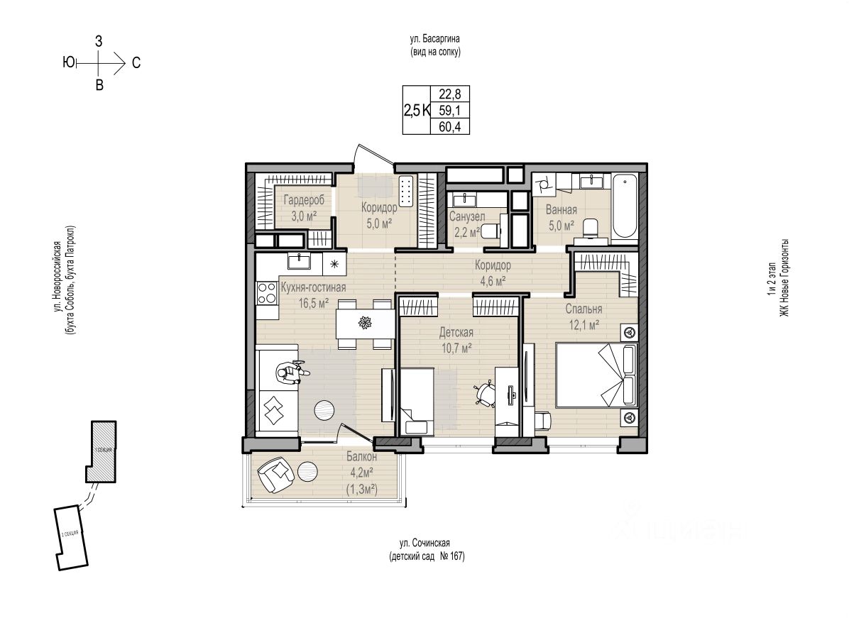 Кухня-гостиная 16,5 кв.м. с выходом на балкон для полноценного семейного отдыха