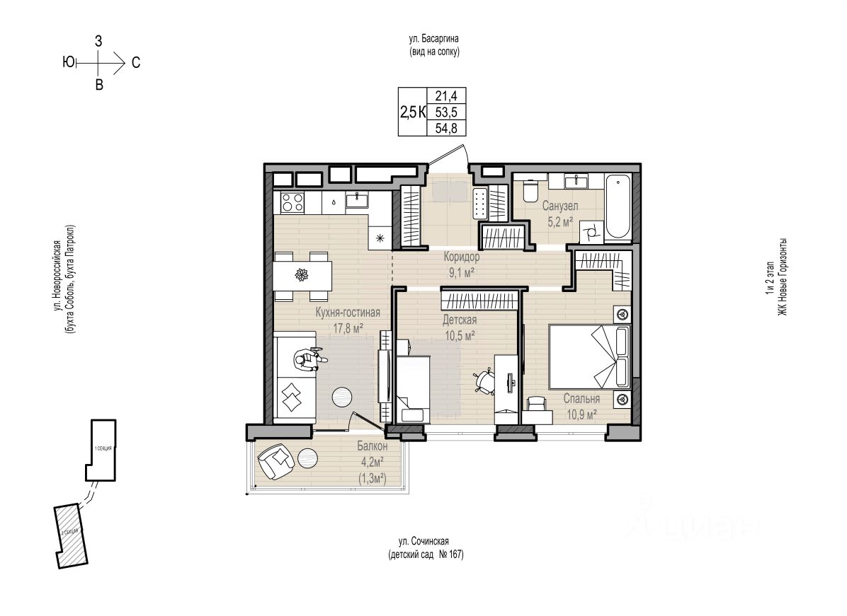 Кухня-гостиная 17,8 кв.м. с выходом на балкон, для отдыха и встреч рассветов всей семьёй