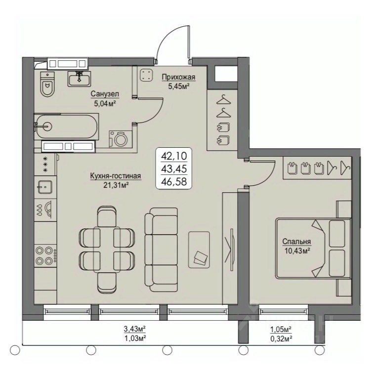 43,45 м²