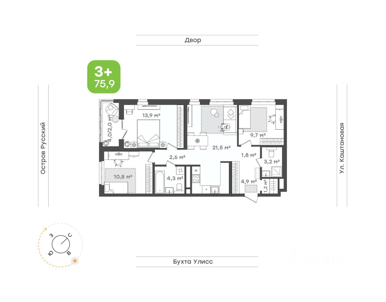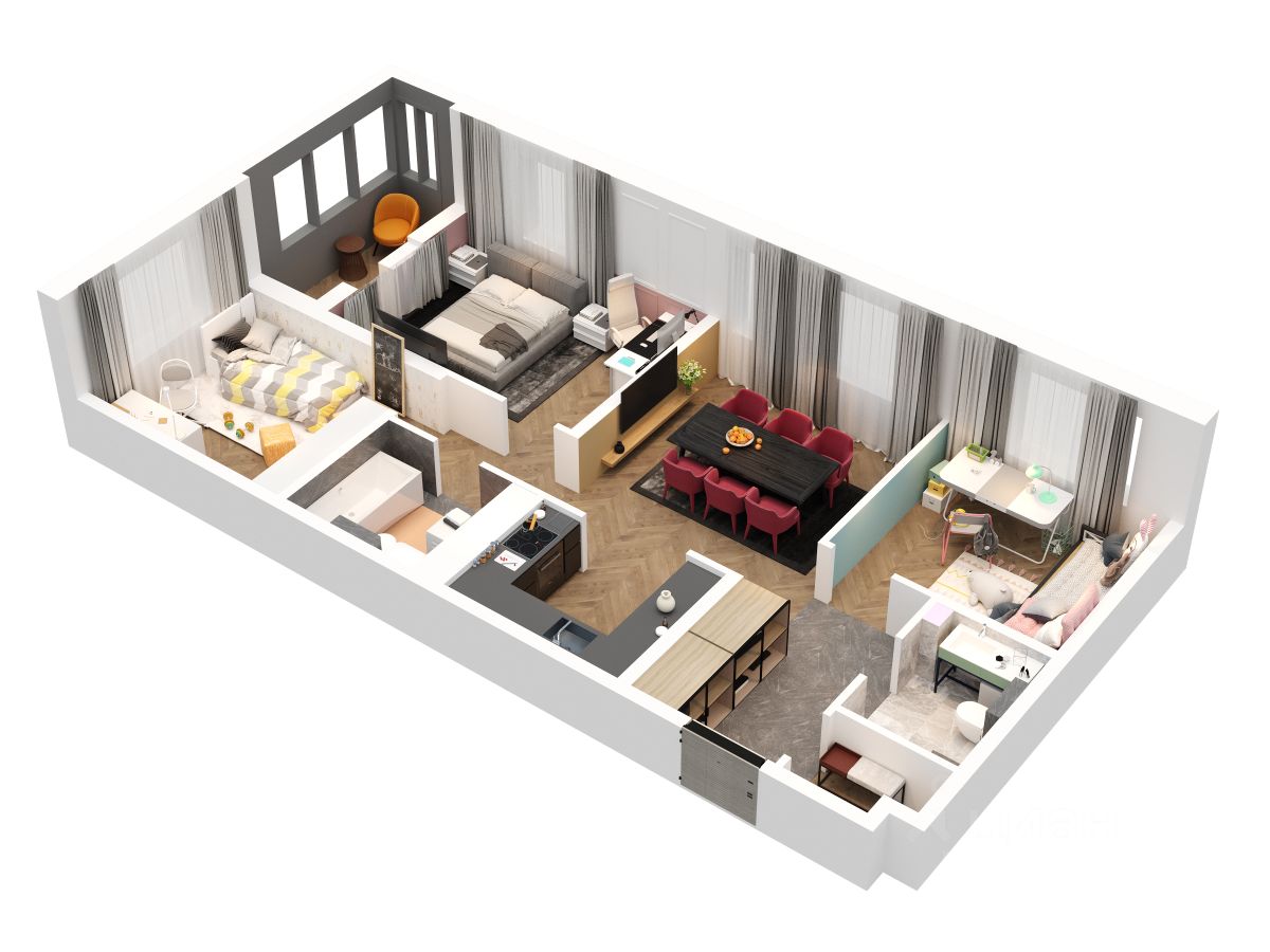 Просторная кухня-столовая 21,5 кв.м идеально подходит для приготовления пищи, уютных семейных завтраков и совместных просмотров фильмов