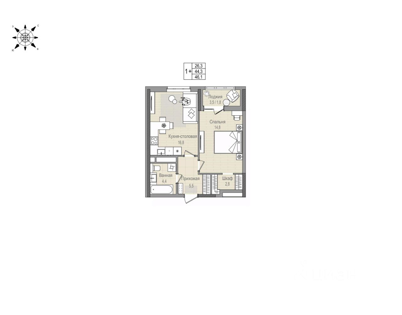 Ванная комната 4,4 кв.м с местом под стиральную машину