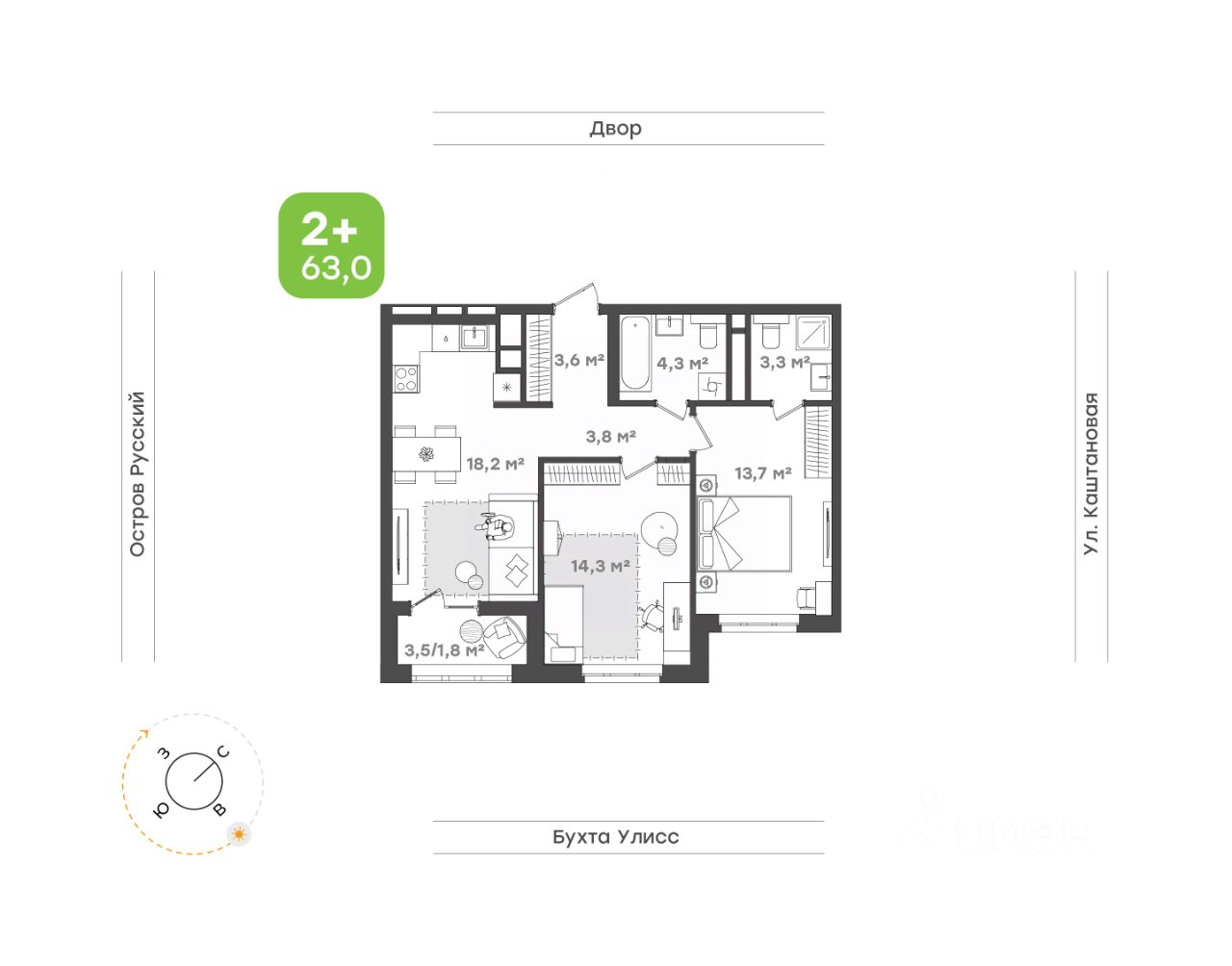 2,5-комнатная с мастер-спальней комфорт для всей семьи