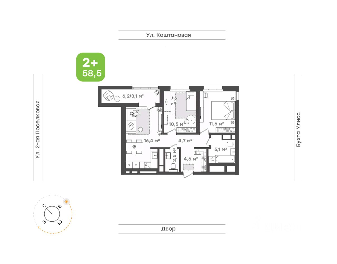 Увеличенная лоджия 6,2 кв.м, где можно наслаждаться свежим воздухом и красивыми панорамами