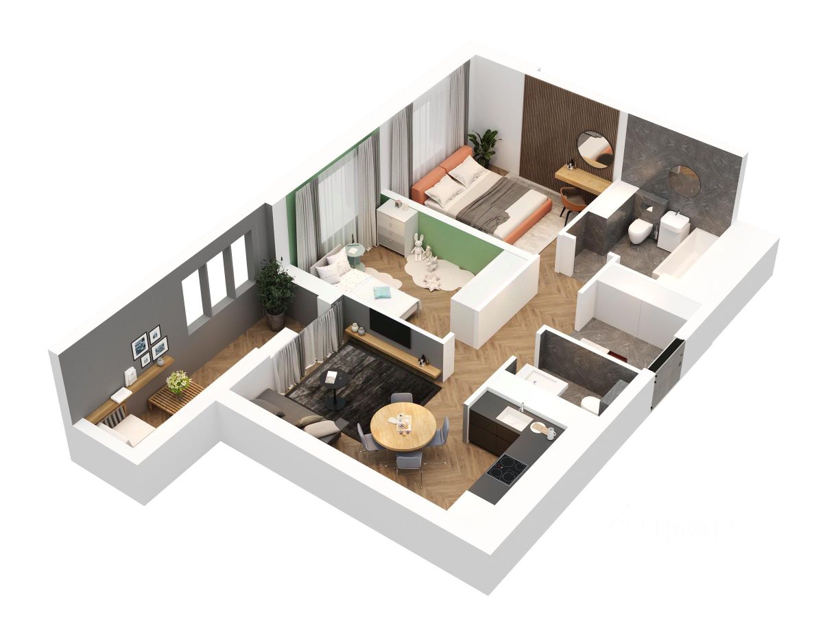 Кухня-гостиная 16,4 кв.м с выходом на лоджию создает комфортное пространство для приготовления еды и приятного времяпровождения в кругу семьи