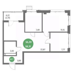 Продаётся 3-комнатная квартира в строящемся доме (Дом 12), срок сдачи: IV-кв. 2027, общей площадью 58.31 кв.м., на 1 этаже. ЖК "Стрижи" - по-европейски уютный жилой комплекс класса "комфорт", расположенный в п. Новый. 12 домов образуют замкнутый треугольник, напоминающий птичий клин. При таком расположении домов внутренний периметр двора остаётся закрытым от машин.