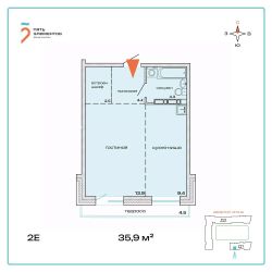 Продаётся 2-комнатная квартира в строящемся доме (Дом 1), срок сдачи: I-кв. 2027, общей площадью 35.9 кв.м., на 5 этаже. "Пять элементов" - современный жилой комплекс в пригороде Владивостока.