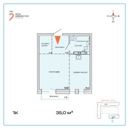 Продаётся 1-комнатная квартира в строящемся доме (Дом 1), срок сдачи: I-кв. 2027, общей площадью 35 кв.м., на 3 этаже. "Пять элементов" - современный жилой комплекс в пригороде Владивостока.