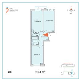 Продаётся 3-комнатная квартира в строящемся доме (Дом 1), срок сдачи: I-кв. 2027, общей площадью 61.4 кв.м., на 5 этаже. "Пять элементов" - современный жилой комплекс в пригороде Владивостока.
