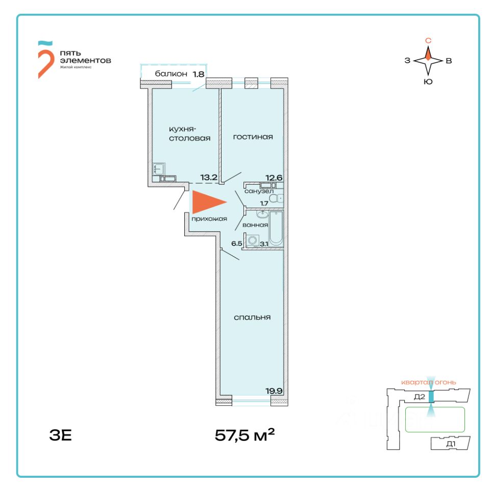 Продаётся 3-комнатная квартира в строящемся доме (Дом 2), срок сдачи: I-кв. 2027, общей площадью 57.5 кв.м., на 3 этаже. "Пять элементов" - современный жилой комплекс в пригороде Владивостока. Жилой комплекс "Пять элементов" - найди свой элемент счастья. Счастье - это моменты, из которых строится жизнь. Застройщик предусмотрел всё: прогулочные зоны для каждого, квартиры с террасами, white box в каждой квартире и многое другое.