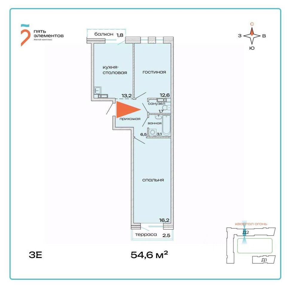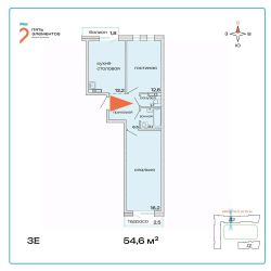 Продаётся 3-комнатная квартира в строящемся доме (Дом 2), срок сдачи: I-кв. 2027, общей площадью 54.6 кв.м., на 6 этаже. "Пять элементов" - современный жилой комплекс в пригороде Владивостока.