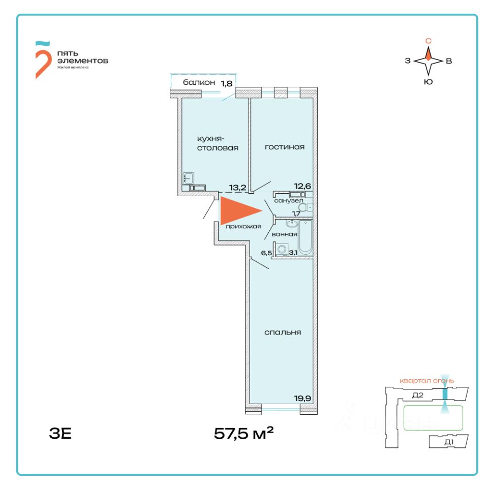Продаётся 3-комнатная квартира в строящемся доме (Дом 2), срок сдачи: I-кв. 2027, общей площадью 57.5 кв.м., на 2 этаже. "Пять элементов" - современный жилой комплекс в пригороде Владивостока. Жилой комплекс "Пять элементов" - найди свой элемент счастья. Счастье - это моменты, из которых строится жизнь. Застройщик предусмотрел всё: прогулочные зоны для каждого, квартиры с террасами, white box в каждой квартире и многое другое.