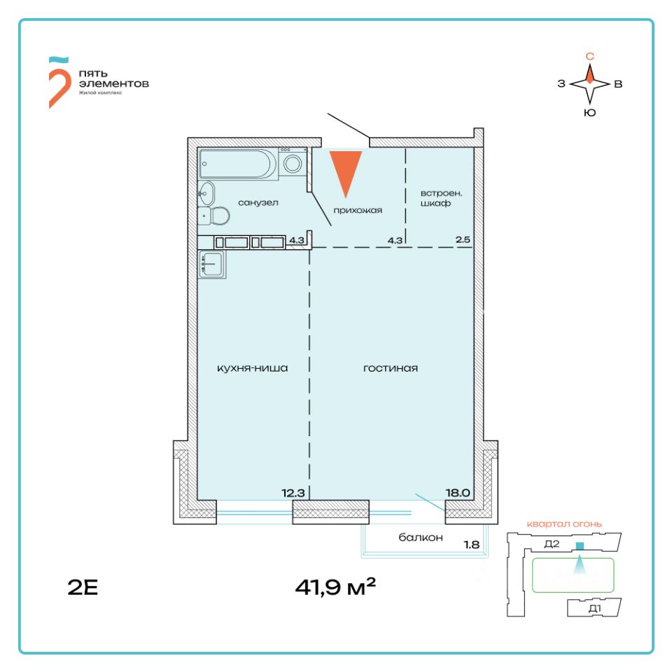Продаётся 2-комнатная квартира в строящемся доме (Дом 2), срок сдачи: I-кв. 2027, общей площадью 41.9 кв.м., на 2 этаже. "Пять элементов" - современный жилой комплекс в пригороде Владивостока.