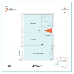 Продаётся 3-комнатная квартира в строящемся доме (Дом 2), срок сдачи: I-кв. 2027, общей площадью 47.9 кв.м., на 3 этаже. "Пять элементов" - современный жилой комплекс в пригороде Владивостока.
