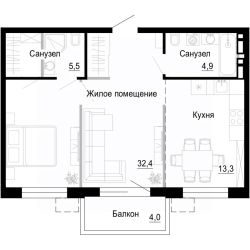 Продаётся 1-комнатная квартира в сданном доме (Дом 46 Корпус 1), срок сдачи: III-кв. 2025, общей площадью 55.6 кв.м., на 2 этаже. Посёлок-парк "ВЕСНА" - это малоэтажные жилые дома в районе улицы Бринера в г. Владивостоке. Общая площадь территории - 5 Га, 10 жилых четырехэтажных дома, 365 квартир площадью от 38,7 до 87м2, 381 парковочное место, парк во дворе.