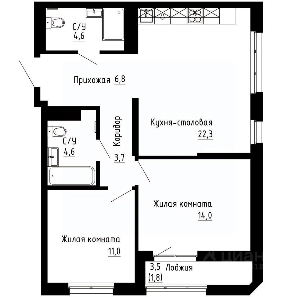 68,8 м²