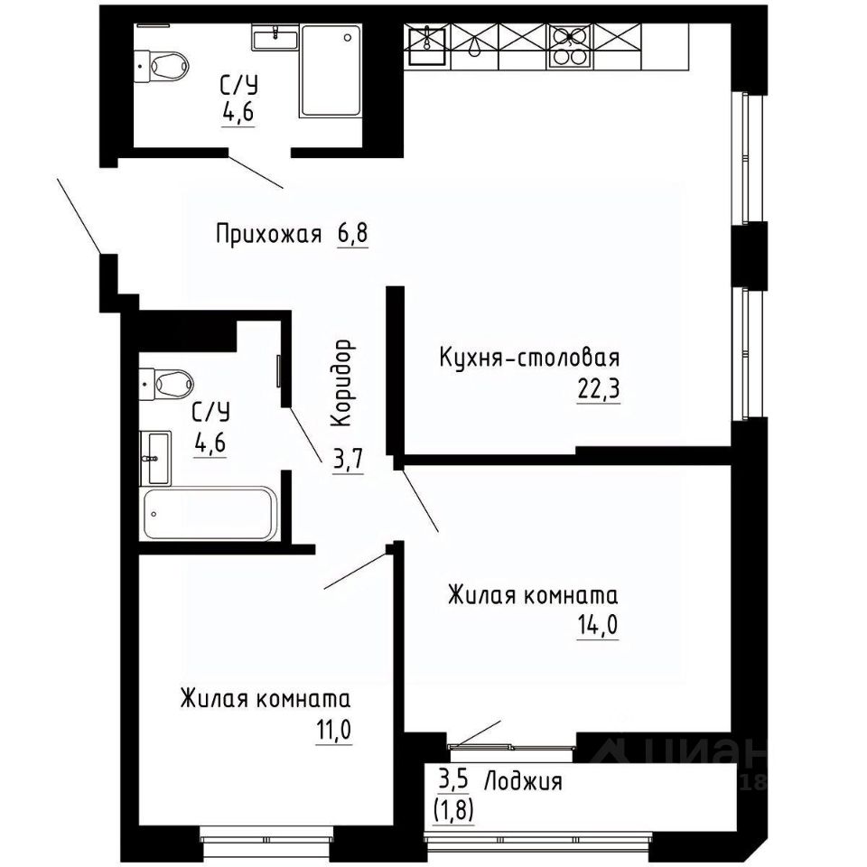 Общая площадь68,8 м²