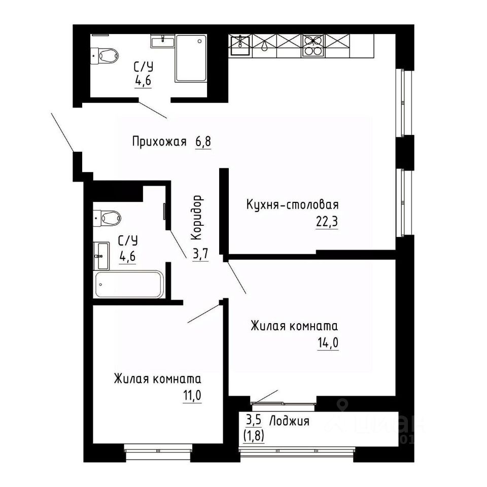 68,8 м²