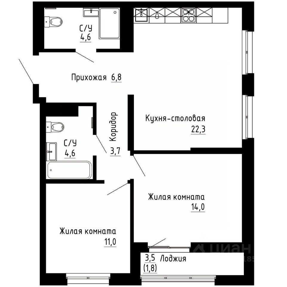 68,8 м²