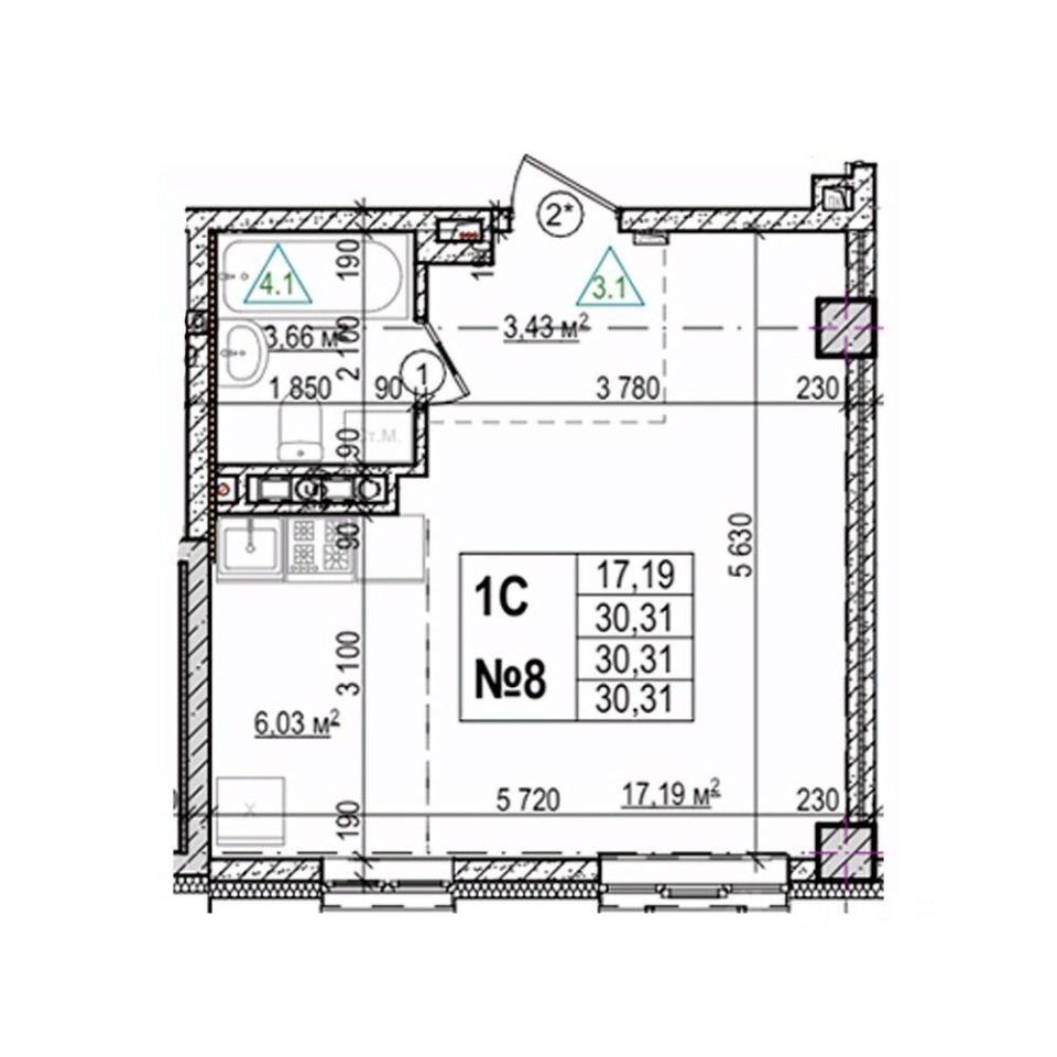 Общая площадь31,12 м²