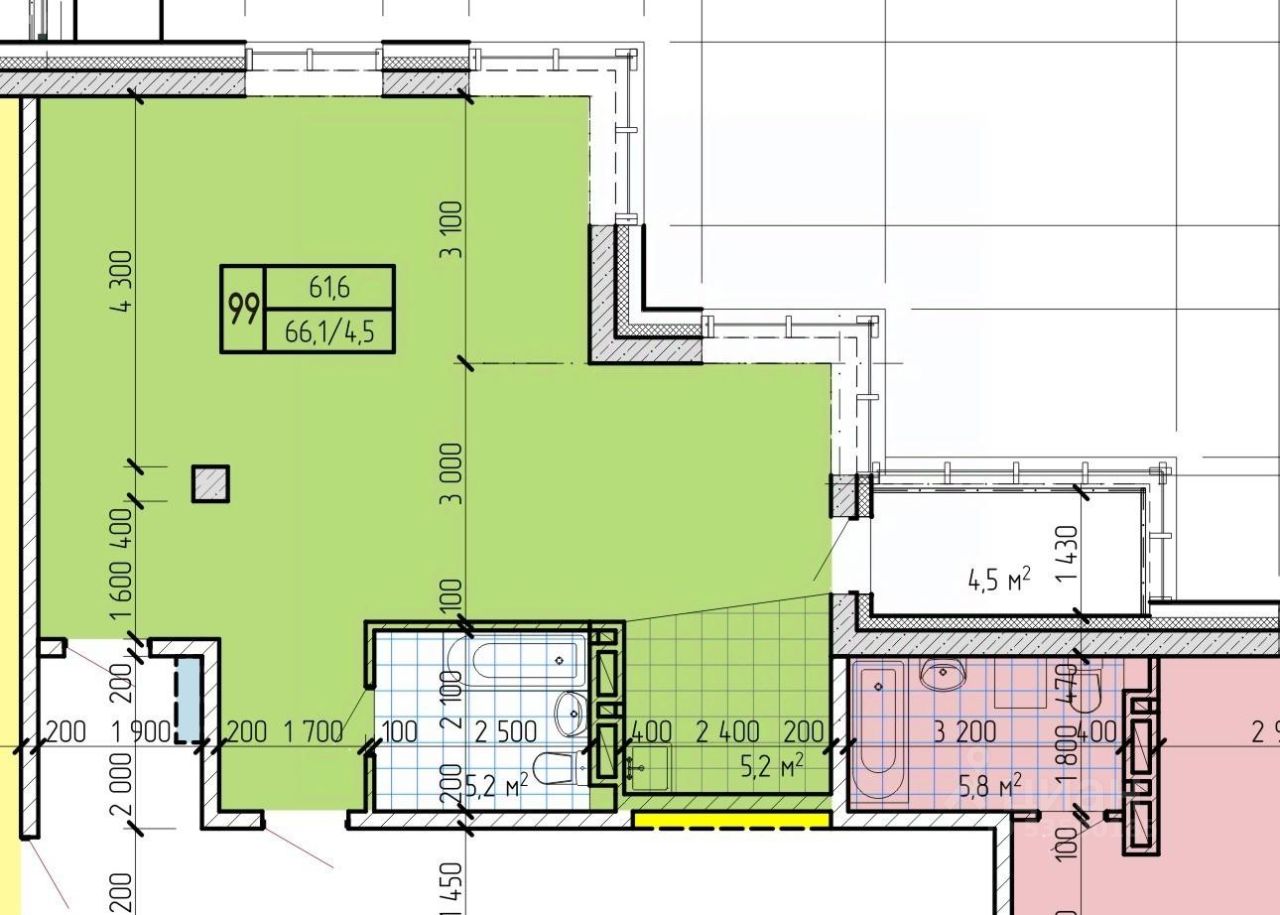 61,6 м²