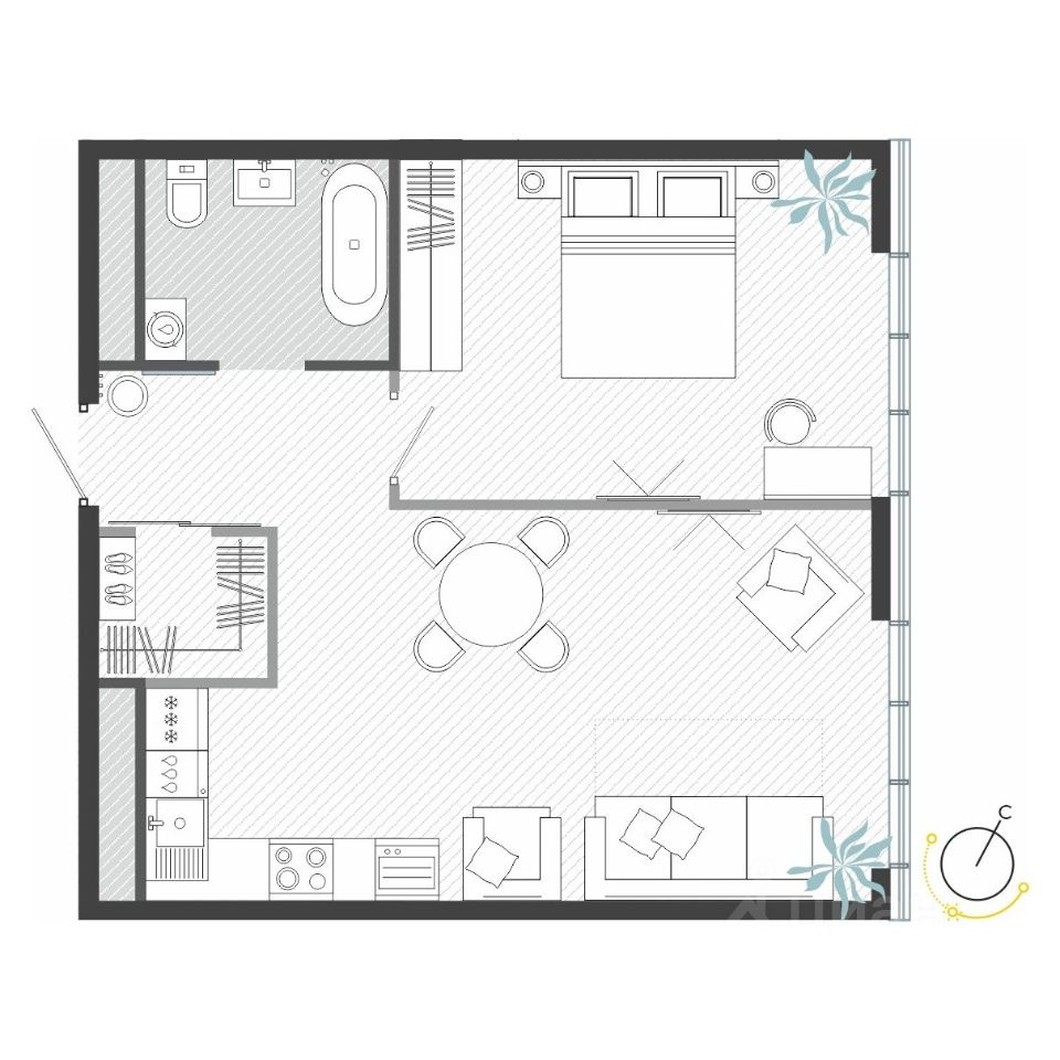 Общая площадь51,57 м²