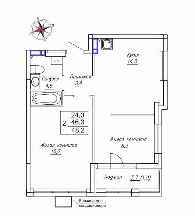 Продаётся 2-комнатная квартира в строящемся доме (Дом 2), срок сдачи: III-кв. 2026, общей площадью 48.2 кв.м., на 2 этаже. ЖК "Новый" - это: