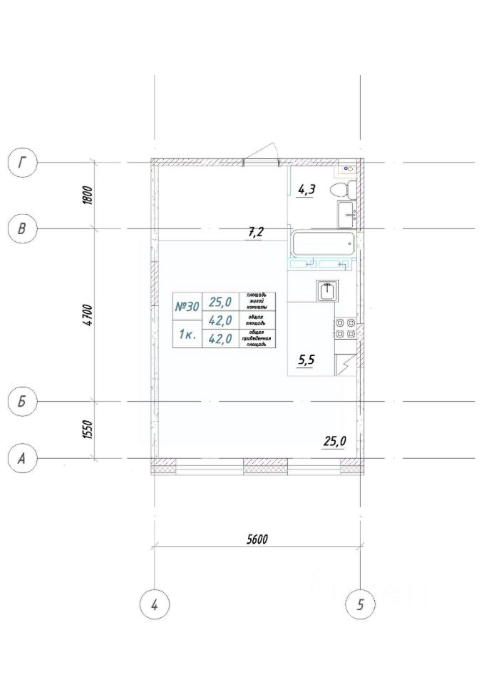 Общая площадь42 м²