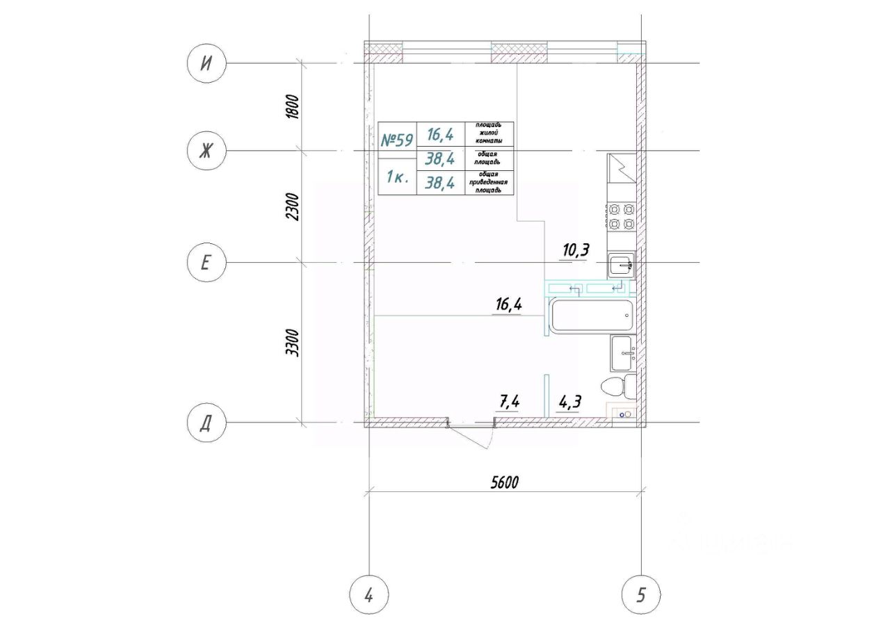 Общая площадь38,4 м²