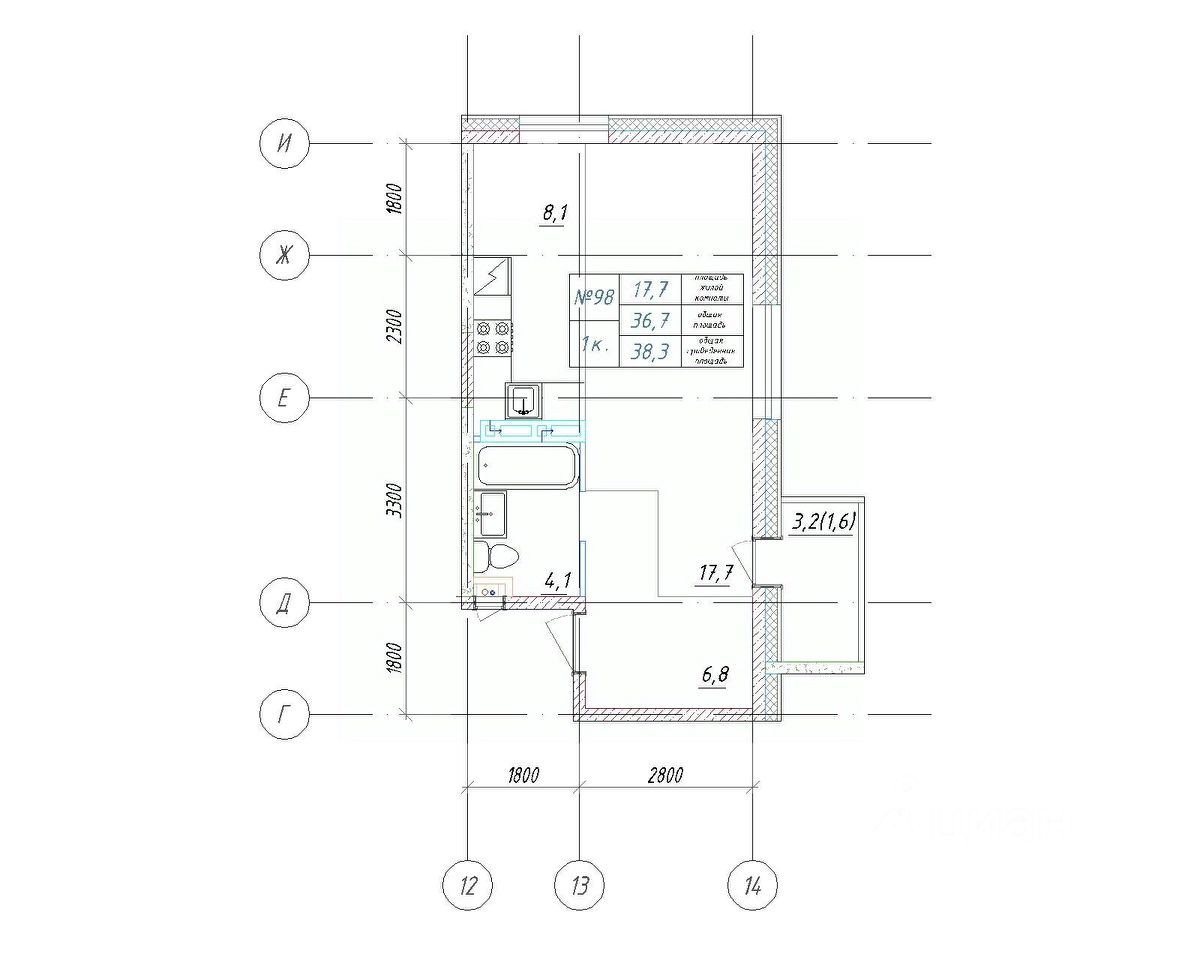 Общая площадь38,3 м²