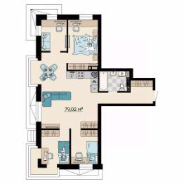 Широкоформатные квартиры свободной планировки формата Smart-vision площадью от 39,56 кв. м до 81,9 кв. м позволяют реализовать любые планировочные решения, а эркерные окна увеличенного размера открывают головокружительный вид на Амурский залив, низководный мост и завораживающий лесной массив. Проектом предусмотрены широкие коридоры мест общего пользования 2,4 м, просторный лифтовой холл площадью 37 кв. м и вестибюль 15,68 кв. м.