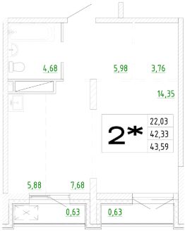 43,59 м²