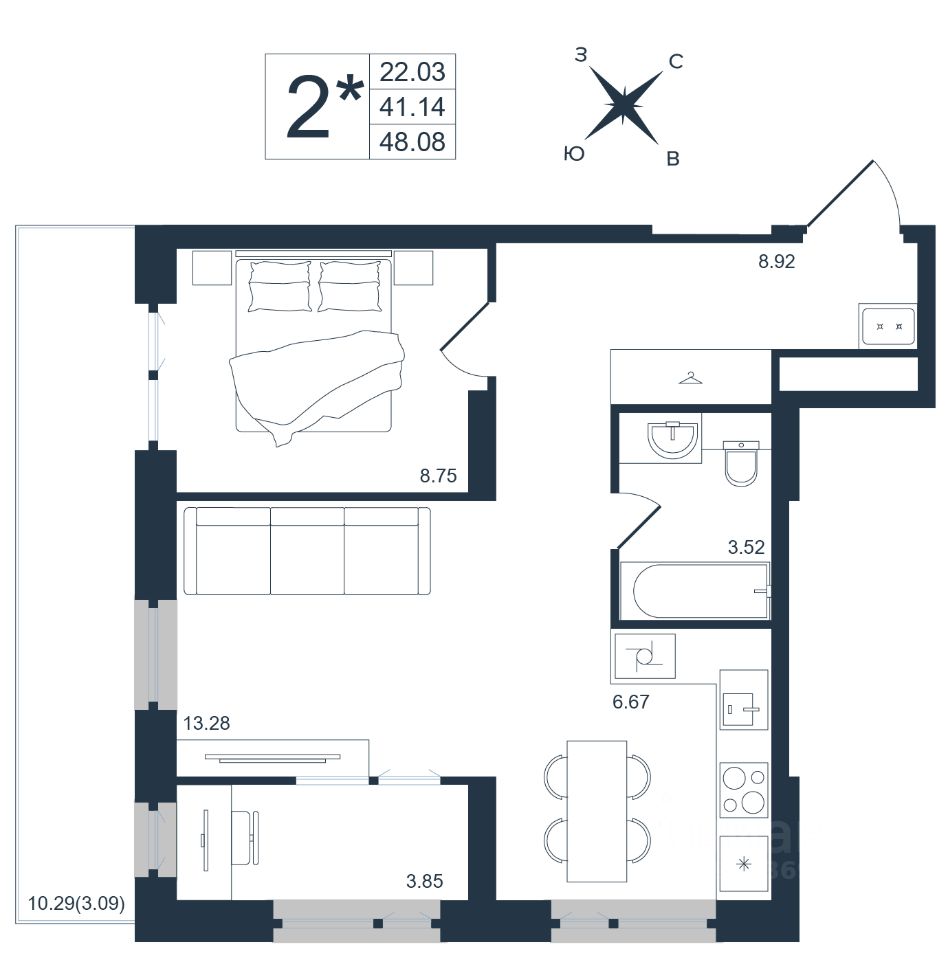 48,08 м²