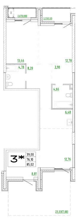 Продаётся 3-комнатная квартира в строящемся доме (Дом 1), срок сдачи: III-кв. 2027, общей площадью 85.02 кв.м., на 1 этаже. Новый жилой комплекс "Архитектор" от группы компаний "Девелопмент-Юг" расположен по адресу: г. Владивосток, по ул. Бежецкая.