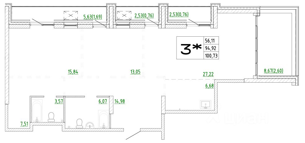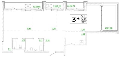 Продаётся 3-комнатная квартира в строящемся доме (Дом 1), срок сдачи: III-кв. 2027, общей площадью 100.73 кв.м., на 1 этаже. Новый жилой комплекс "Архитектор" от группы компаний "Девелопмент-Юг" расположен по адресу: г. Владивосток, по ул. Бежецкая.
